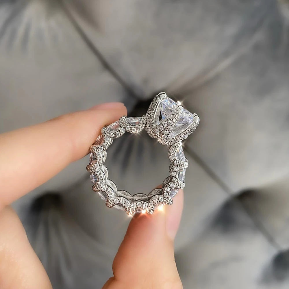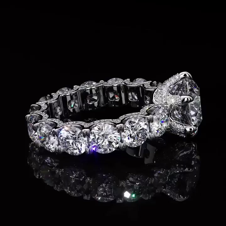 La montatura luminosa abbraccia una pietra centrale radiosa, creando un gioco di luce senza tempo.